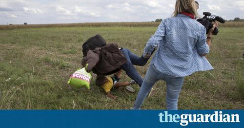 The Guardian • 8th September 2015 Hungarian nationalist TV camera operator filmed kicking refugee children