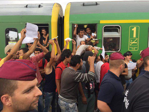 The Guardian • 3rd September 2015 Hungarian police order refugees off train heading to Austrian border